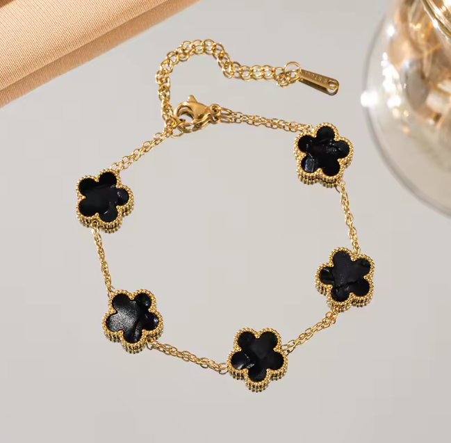 Doppelseitiges Fünfblättriges Blumenarmband, verstellbar, 18 Karat vergoldeter Edelstahl, Kleeblatt